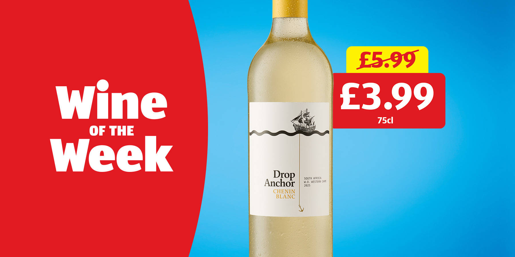 Save over 30% on French Bordeaux 75cl, £4.99, £6.65 per litre. New Zealand Sauvignon Blanc 75cl, £4.99, £6.65 per litre. Chateauneuf Du Pape 75cl, £9.99, £13.32 per litre.
