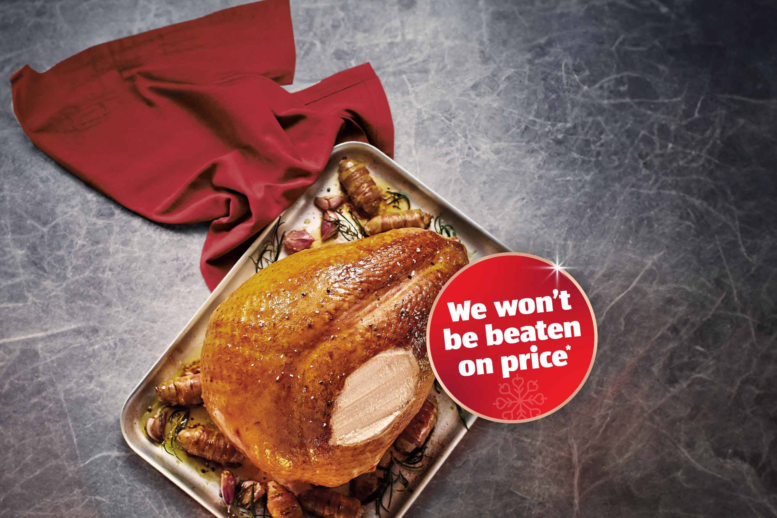 **We guarantee to match the lowest prices for equivalent products to Fresh British Whole Turkey, Fresh British Turkey Crown, Frozen British Whole Turkey and Frozen British Turkey Crown (excluding multi-buys and any promotional prices) in Asda, Sainsbury’s, Tesco, Morrisons, Lidl, Co-op, Marks & Spencer, Waitrose, Ocado and Iceland between 15/09/2025 – 23/12/2025 for Medium Frozen British Whole Turkey and Medium Frozen British Turkey Crown, between 13/10/2025 – 23/12/2025 for Small and Large Frozen British Whole Turkey and Small and Large Frozen British Turkey Crown, and between 19/12/2025 and 23/12/2025 for Fresh British Whole Turkey and Fresh British Turkey Crown. Prices checked daily at supermarkets listed above. Price changes may take a few days to come into effect. If you can provide proof of a lower price for an equivalent product (excluding multi-buys and any promotional prices) at any of these supermarkets on the date of your purchase, we will match that price.