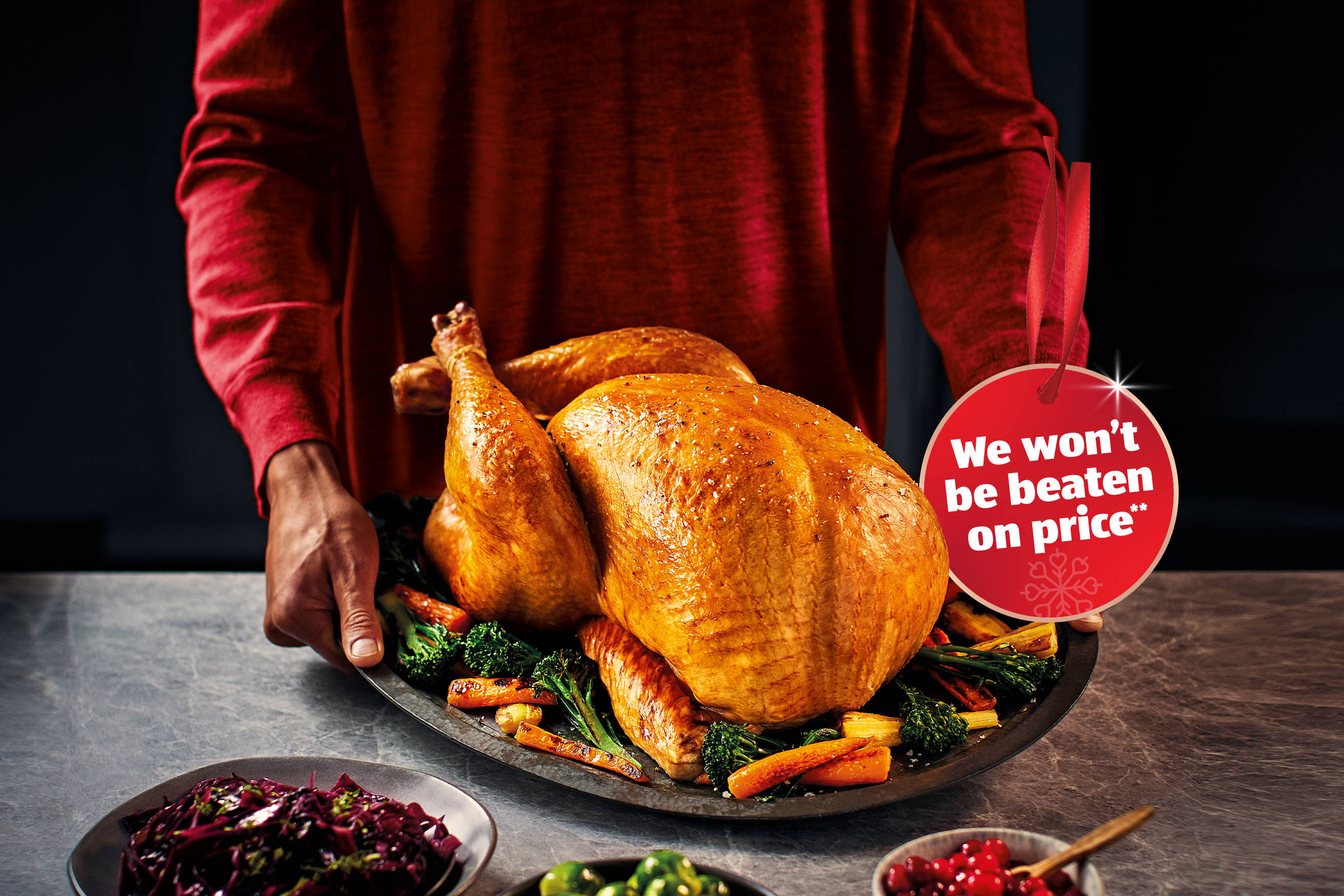 **We guarantee to match the lowest prices for equivalent products to Fresh British Whole Turkey, Fresh British Turkey Crown, Frozen British Whole Turkey and Frozen British Turkey Crown (excluding multi-buys and any promotional prices) in Asda, Sainsbury’s, Tesco, Morrisons, Lidl, Co-op, Marks & Spencer, Waitrose, Ocado and Iceland between 15/09/2025 – 23/12/2025 for Medium Frozen British Whole Turkey and Medium Frozen British Turkey Crown, between 13/10/2025 – 23/12/2025 for Small and Large Frozen British Whole Turkey and Small and Large Frozen British Turkey Crown, and between 19/12/2025 and 23/12/2025 for Fresh British Whole Turkey and Fresh British Turkey Crown. Prices checked daily at supermarkets listed above. Price changes may take a few days to come into effect. If you can provide proof of a lower price for an equivalent product (excluding multi-buys and any promotional prices) at any of these supermarkets on the date of your purchase, we will match that price.