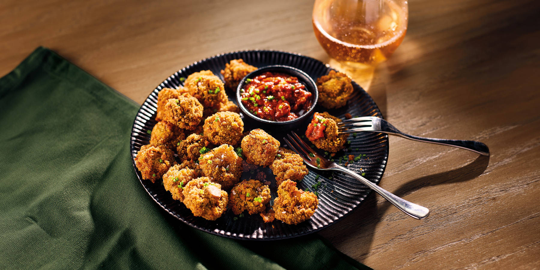 Breaded Garlic Mushrooms with Smokey Tomato Dip