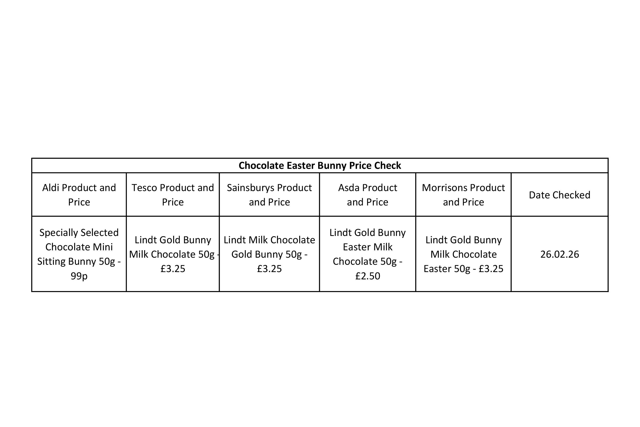 Specially Selected Milk Chocolate Mini Bunny 50g, £1.98 per 100g. Aldi price on Specially Selected Milk Chocolate Mini Bunny lowest as of 26/02/26. Prices checked at Tesco, Asda, Sainsbury’s and Morrisons on comparable products every week with any Aldi price adjustment within 11 days. Prices pro-rated. Loyalty card prices and multi-buy offers excluded. Subject to availability. Aldi product packaging and prices may differ in Scotland, Wales and Aldi Local.