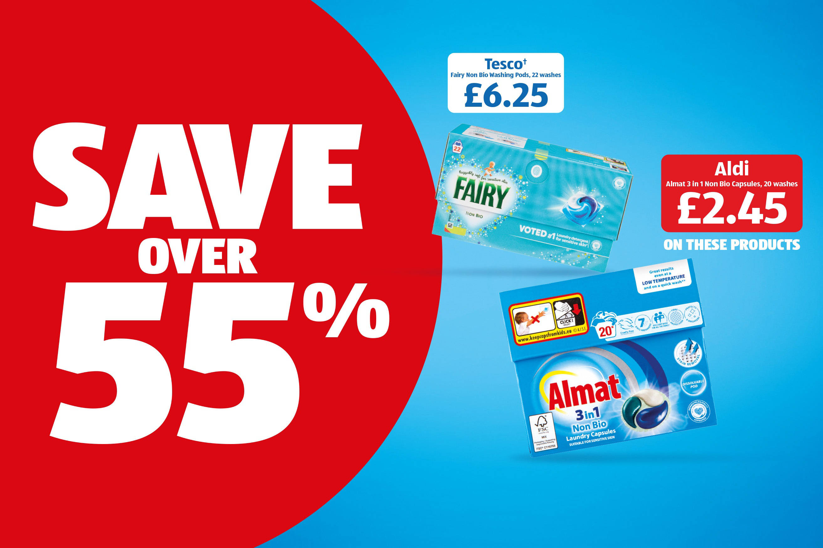 Which? Cheapest Supermarket November 2025 awarded by Which? based on independent comparison of goods from Lidl, Asda, Morrisons, Tesco, Sainsbury’s, Ocado, Waitrose and Aldi in November 2025. For more information visit which.co.uk/reviews/supermarkets/article/supermarket-price-comparison. Based on a comparison of Aldi products against products shown only. Tesco may sell own brand/other products at different prices. †Excluding Clubcard prices. Lowest Tesco price pro rata, considering size and offers, used and checked on 02/12/25. Aldi prices and packaging correct as of 02/12/25. Subject to availability. Product packaging may differ in each region. Products and prices may vary in store, Scotland, Wales, Aldi Local and online.