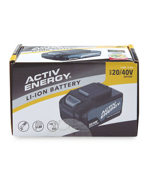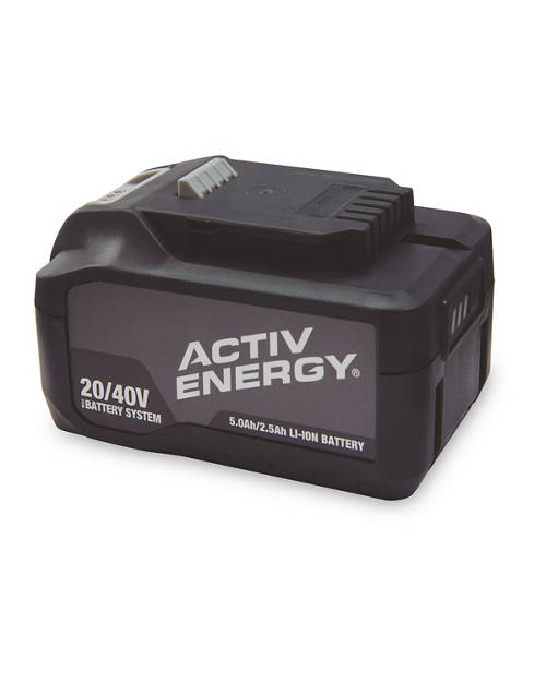 - Charging time in min: 45 minutes (approx.) for a 2.0Ah 20V Activ Energy battery pack, 95 minutes (approx.) for a 2.5Ah 40V Activ Energy battery pack (20V = 5.0Ah)