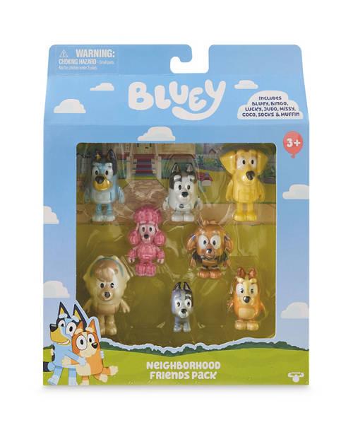 - Includes Bluey, Bingo, Lucky, Judo, Missy, Coco, Socks and Muffin with moving arms and bodies