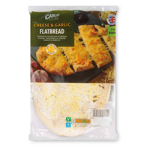 Soft white flatbread topped with mature cheddar cheese, mozzarella cheese, garlic and parsley.