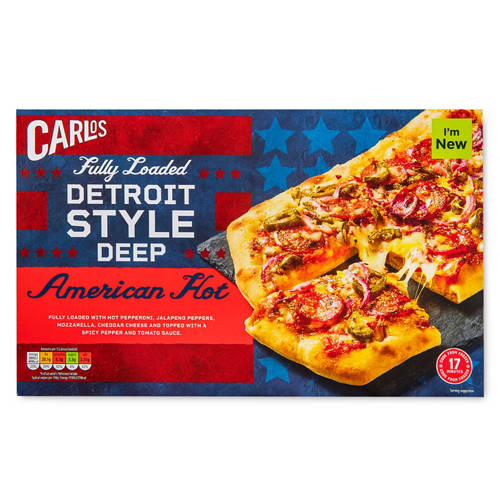 Fully loaded with hot pepperoni, jalapeno peppers, mozzarella, cheddar cheese and topped with a spicy pepper and tomato sauce.