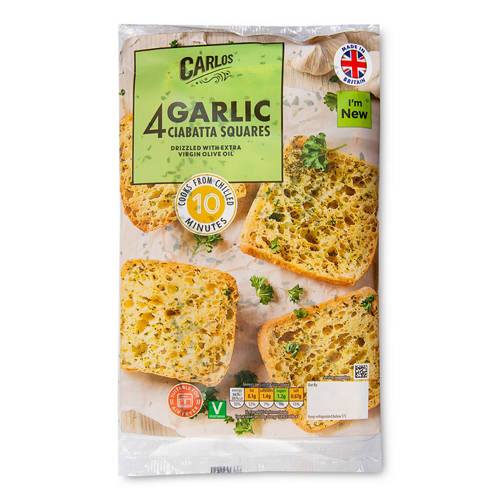Ciabatta topped with extra virgin olive oil (9%), garlic and parsley.
