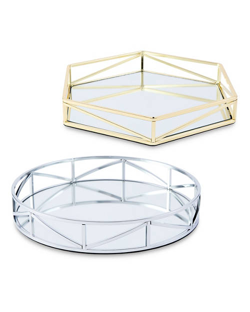 - Choose from Mirror Gold or Silver in Round or Hexagonal shapes.