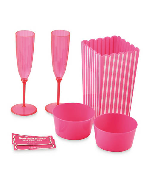 - Includes: 1 x popcorn bucket, 2 x Champagne Flutes, 2 x Snack Cups, 2 x Movie ticket