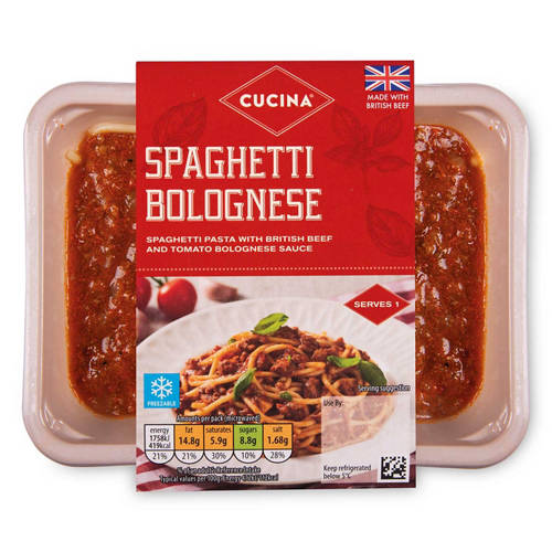 Spaghetti pasta with British beef and tomato bolognese sauce.