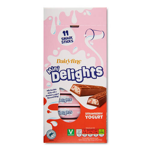 Milk chocolate sticks with a strawberry yogurt flavoured filling.