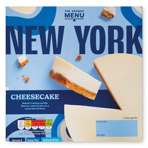 - New York Baked creamy vanilla flavoured cheesecake on a sweet biscuit base
