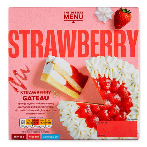 Layers of golden sponge with fruity strawberry sauce and creamy vanilla flavour filling