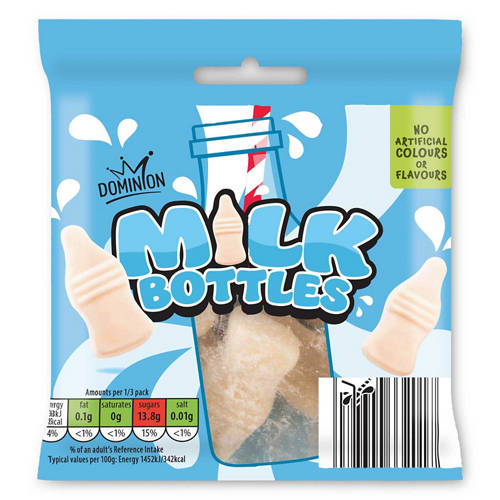 Milk bottle shaped vanilla flavour gums.