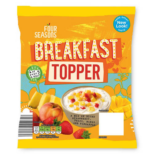 - A mix of diced strawberry, peach, mango and pineapple.