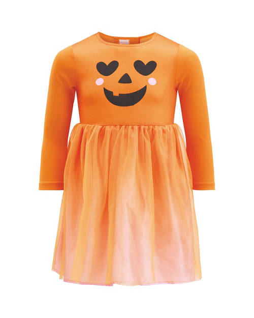 - Choose from: Pumpkin (one size), Pumpkin dress, Skeleton, Witch and Gaming Skeleton available in sizes 3/4 - 9/10 years