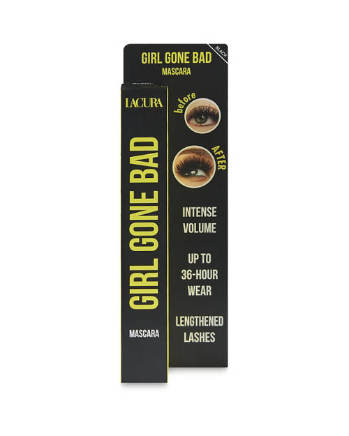 The Lacura Girl Gone Bad Mascara is an intensely volumizing and long wearing mascara that keeps lashes in place for up to 36-hours. This mascara will not compromise on comfort while building dramatic volume.