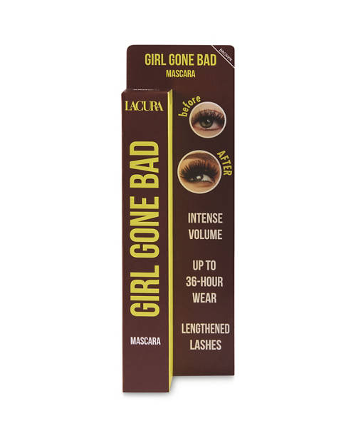 The Lacura Girl Gone Bad Mascara is an intensely volumizing and long wearing mascara that keeps lashes in place for up to 36-hours. This mascara will not compromise on comfort while building dramatic volume.