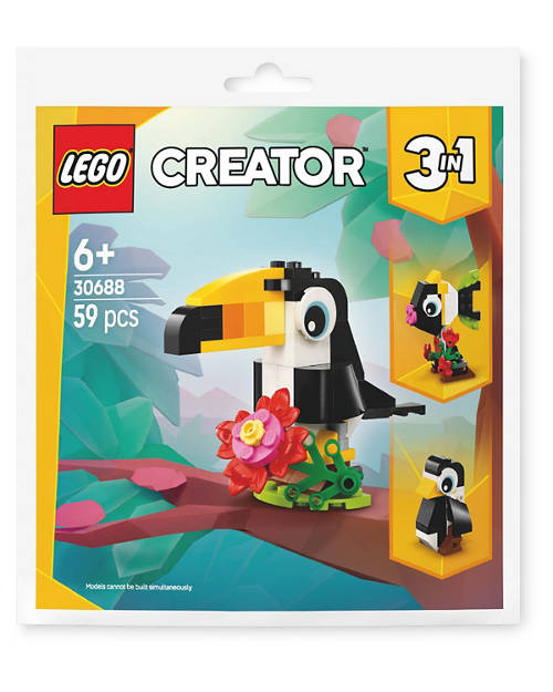 This fantastic 3in1 playset lets animal fans build a cute Tropical Toucan with a flower before rebuilding it into a fish swimming among corals, or a penguin.