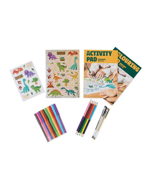 - Contains a 16 Sheet Colouring Pad, 16 Page Activity Pad, 10 Assorted Felt Tip Pens, 5 Pack Dual Tip Pens, 2 Pack Gel pens, Holographic and 3D Stickers