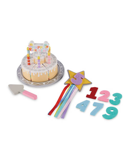 - Each cake made of Beech Wood/MDF, Tea Wood, Polyester, Nylon, felt, finished with various colours, includes candles, cake slices and cake decoration
