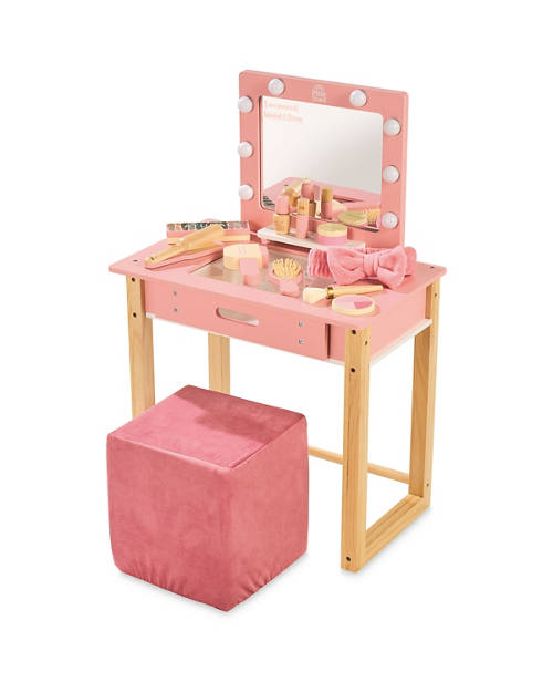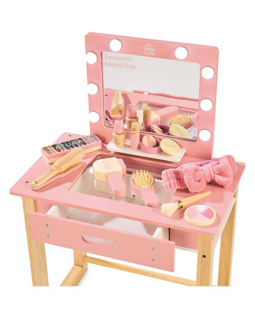- X1 Stool, X1 Nail Polish, X1 Hairdryer , X1 Straighteners , X1 Brush , X1 Eye Shadow Pallet, X1 Highlighter pallet , X1 Blusher Pot , X1 Powder Puff, X1 Makeup Brush , X1 Lip stick , X1 Headband, X1 Mirror sticker