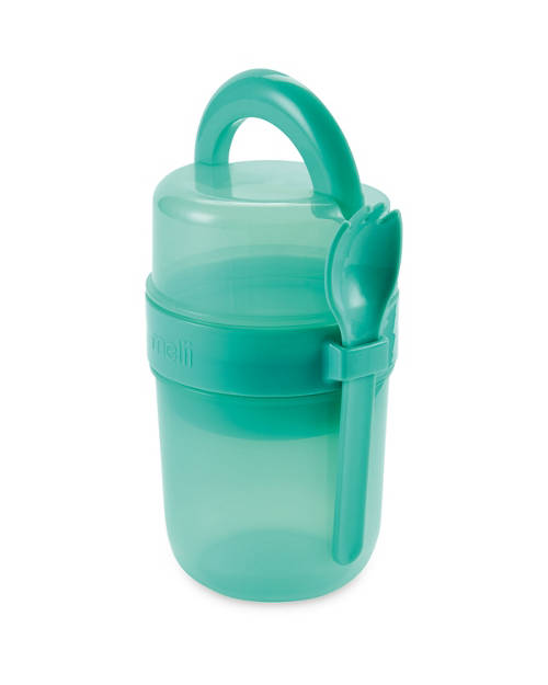 - Cleverly built-in spork snaps securely into place