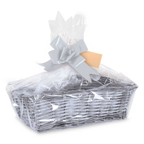 - Choose from Natural or Grey Baskets with Coloured Ribbon in Silver, Red, Gold or Blue