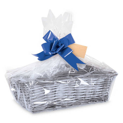 - Choose from Natural or Grey Baskets with Coloured Ribbon in Silver, Red, Gold or Blue