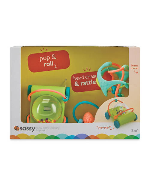 - Includes toys and teethers that contribute to sensory learning