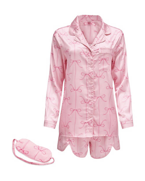 - Sleep set includes button up top, shorts and eye mask