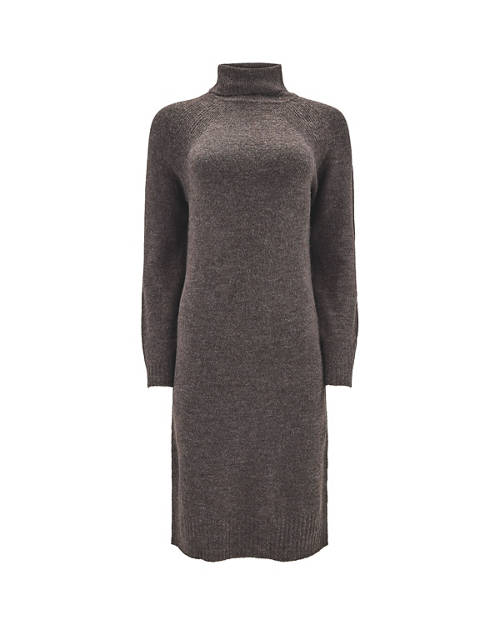 - Grey with mock neck, Red with narrow crew neck, Brown with roll neck