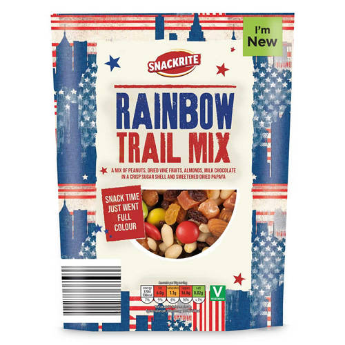 - Fruit and nut mix with chocolate pieces coated in a crispy colourful sugar shell.