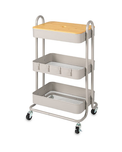 A serving trolley versatile for use in the kitchen, living room and bathroom.