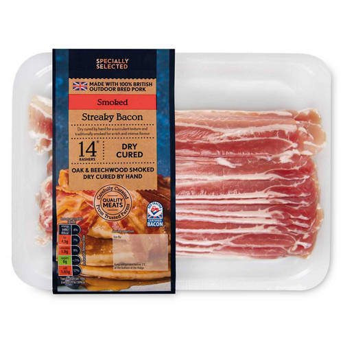 100% British Pork Dry Cured Smoked Streaky Bacon 14 Pack
