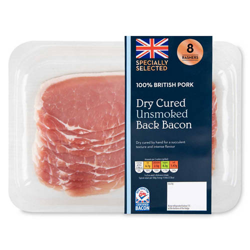 100% British Pork Dry Cured Unsmoked Back Bacon 8 Pack