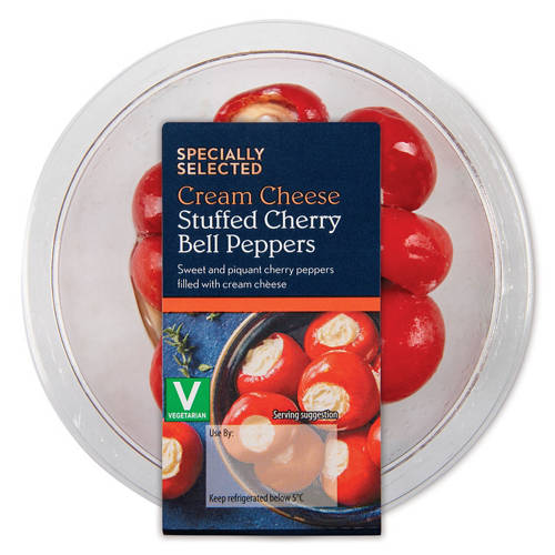 Cherry peppers stuffed with cream cheese, with rapeseed oil.