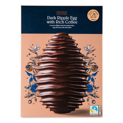 Hollow dark chocolate egg with cocoa nibs and coffee in the shell.