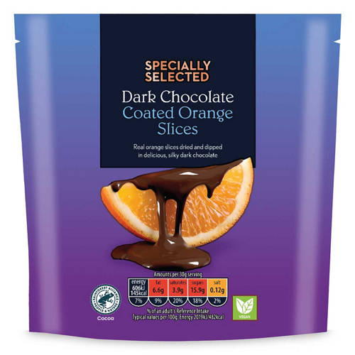 Enjoy a healthier sweet treat with some dried orange slices in a milk chocolate coating.