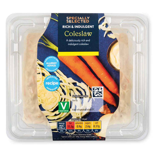 - A deliciously rich and Indulgent coleslaw made with Free range egg mayonnaise.