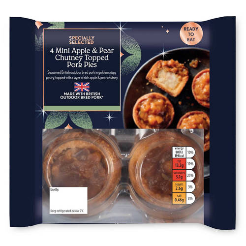 Topped Mini Apple & Pear Chutney Pork Pies 4 Pack