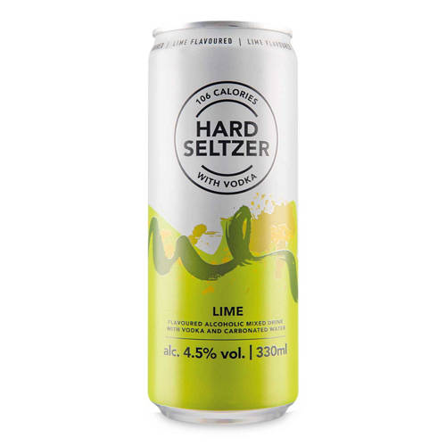 Lime Flavoured Alcoholic Mixed Drink with Vodka and Carbonated Water.