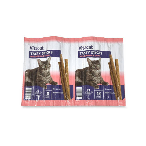 • 10 Sticks Our Vitacat treats are a purrrfect, tasty snack at any time of the day. Made with yummy ingredients and bursting with flavours your cat will love! Bursting with flavour Feed to your cat in between its normal meals as part of a balanced diet.