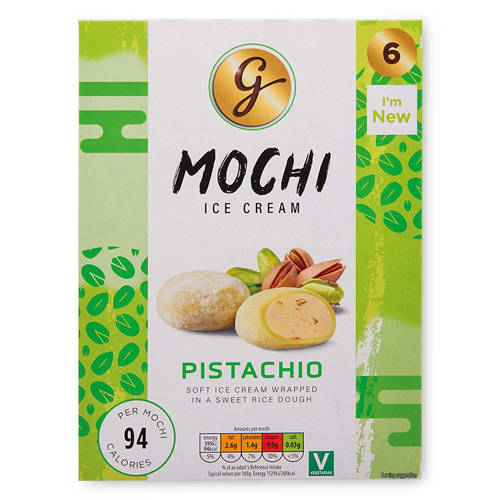 Rice dough filled with pistachio ice cream with caramelised pistachio pieces.