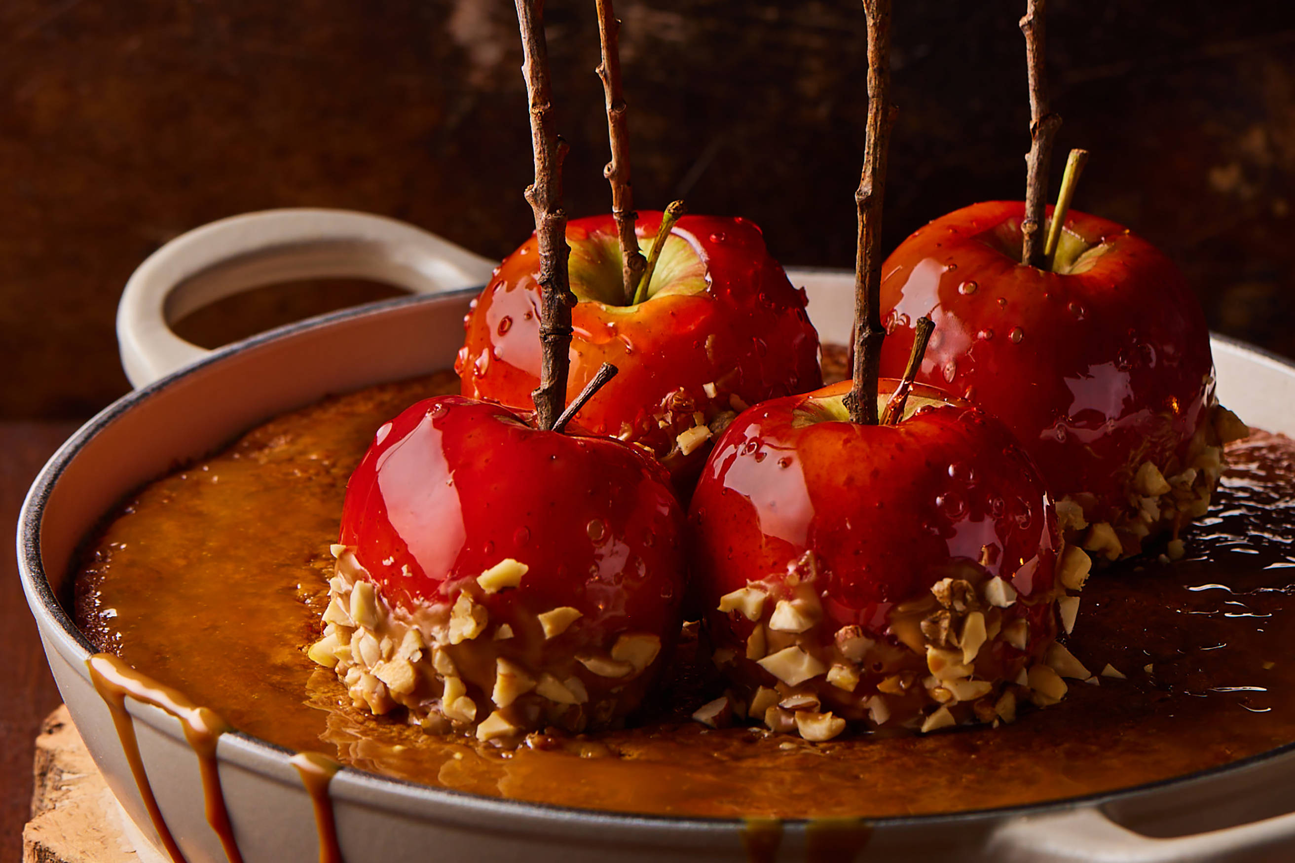 - Serve warm topped with the 3 toffee apples and more sauce on the side.