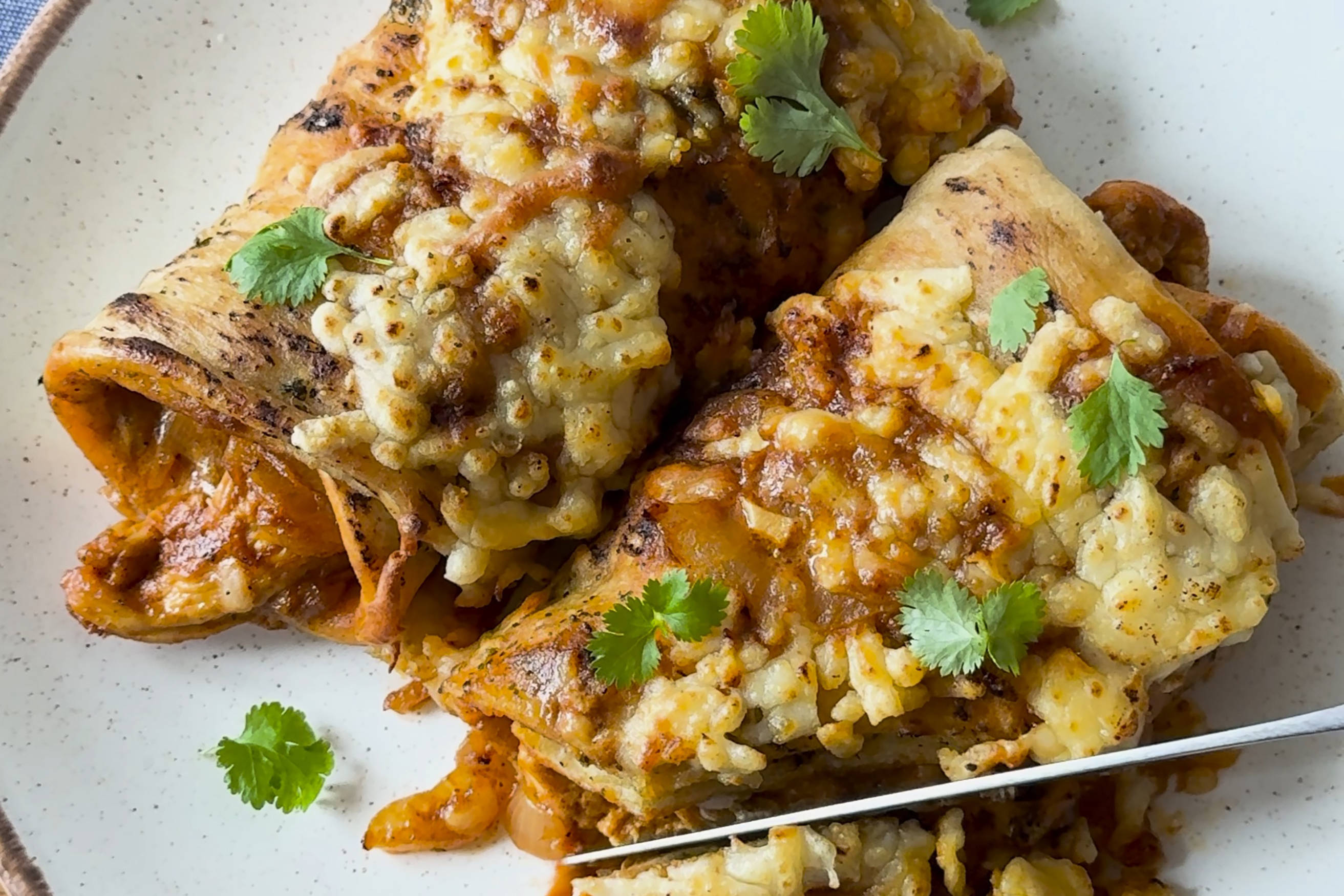 - Fill the naan with the butter chicken, sprinkle over the cheese and roll carefully, securing with a skewer.