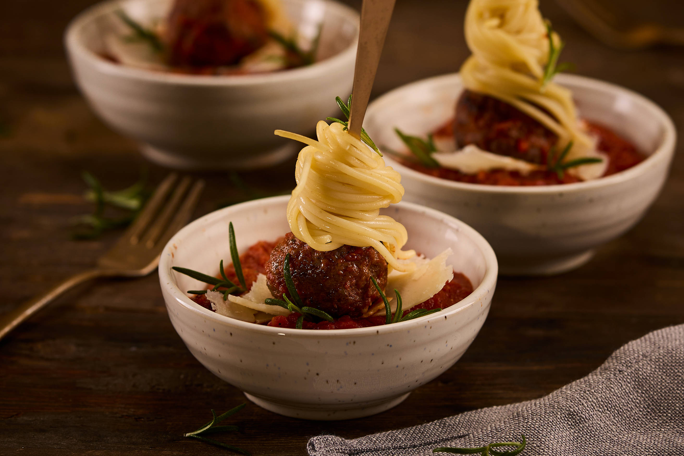 - Wrap the spaghetti around 12 skewers and top with a meatball.