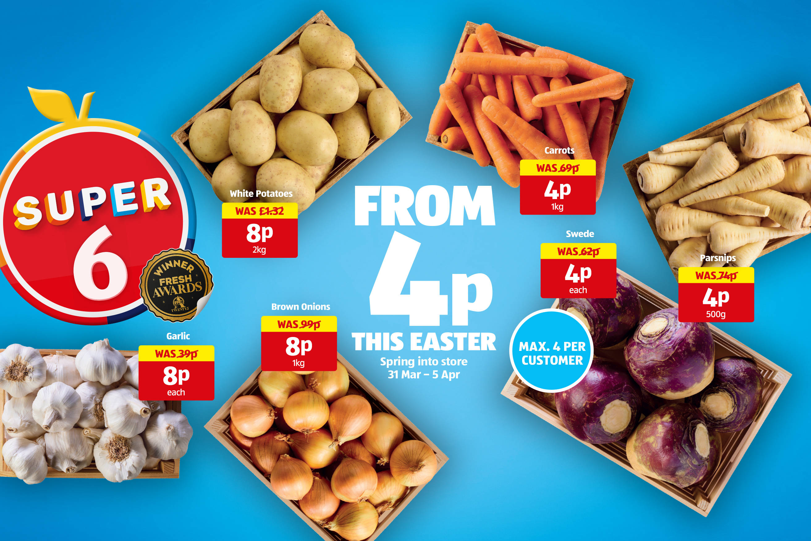 Aldi produce is award-winning. We work with the best suppliers to stock every store with quality fruit and veg. Then every two weeks we pick 6 of our favourites and offer them to our customers at super low prices - all at no extra cost to our amazing suppliers. We work hard to ensure our produce is of the freshest quality but if you are not 100% happy with your purchase don’t worry - with our Fresh Guarantee* just return the item and we’ll refund you! Aldi. Super quality. Super value.